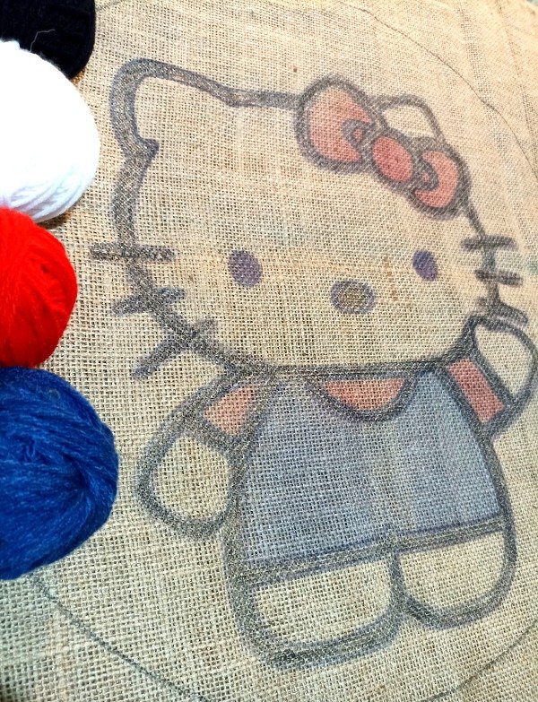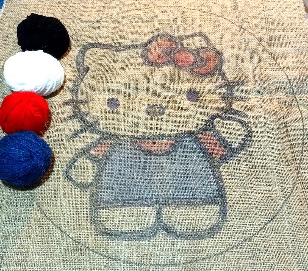 Kit compuesto por tela arpillera de 60 x 50 cm con diseño a bordar de 51 cm de diametro ,con lanas para todo el proyecto. Sin aguja ni bastidor.